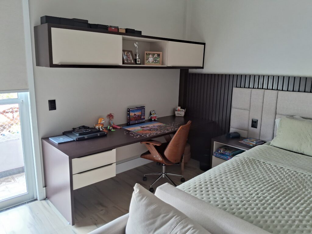 Mesa personalizadas, bancadas sob medida, gaveteiros, armários suspensos e outros elementos para seu ambiente.
